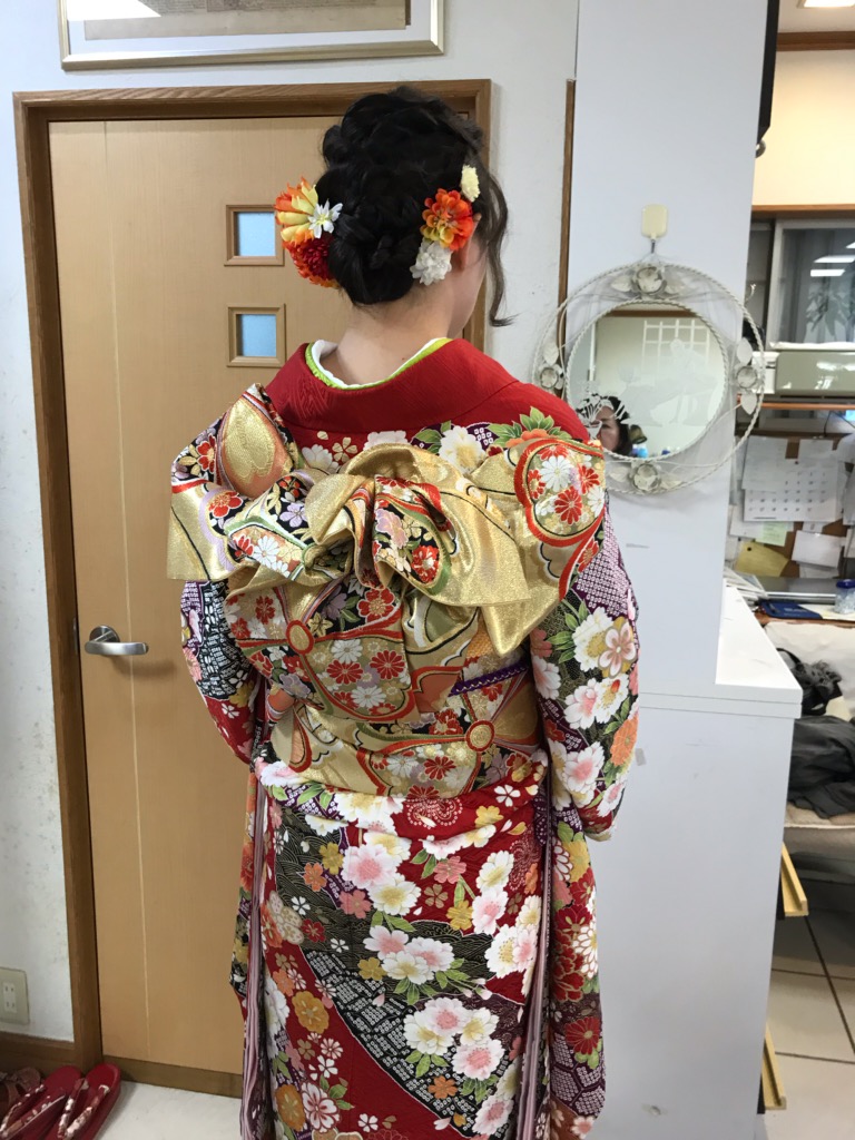 当店では、着付けも承っております。苦しくなく、しかも着崩れしないとお客様から好評をいただいています。例年、成人式でのご利用も多く、早朝からの予約も承ります。シーンに合わせたアレンジで振袖から、ゆかた、袴など、晴れの日を華やかな仕上がりでまとめ、素敵な一日になるよう、サポートさせていただきます。